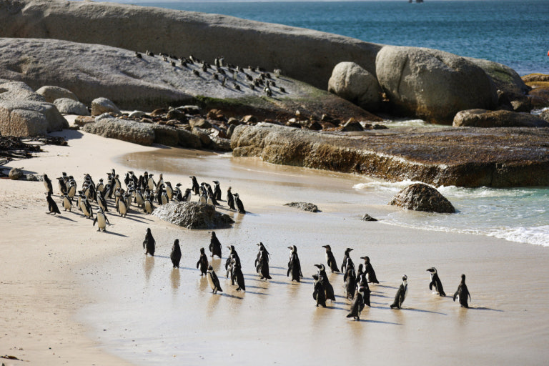 "펭귄은 추운 남극에만 사는 거 아니야?"라는 편견은 그만! 남아공 케이프타운의 **볼더스 비치(Boulders Beach)**에 가면 뜨거운 태양 아래서 일광욕을 즐기는 자카스 펭귄들을 만날 수 있습니다.