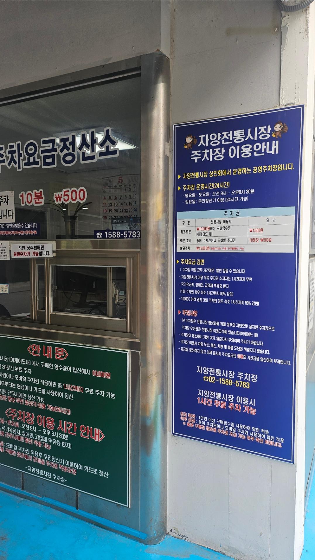 주차장은 시장 바로 옆에 위치해 있고, 주차요금도 부담스럽지 않아요.